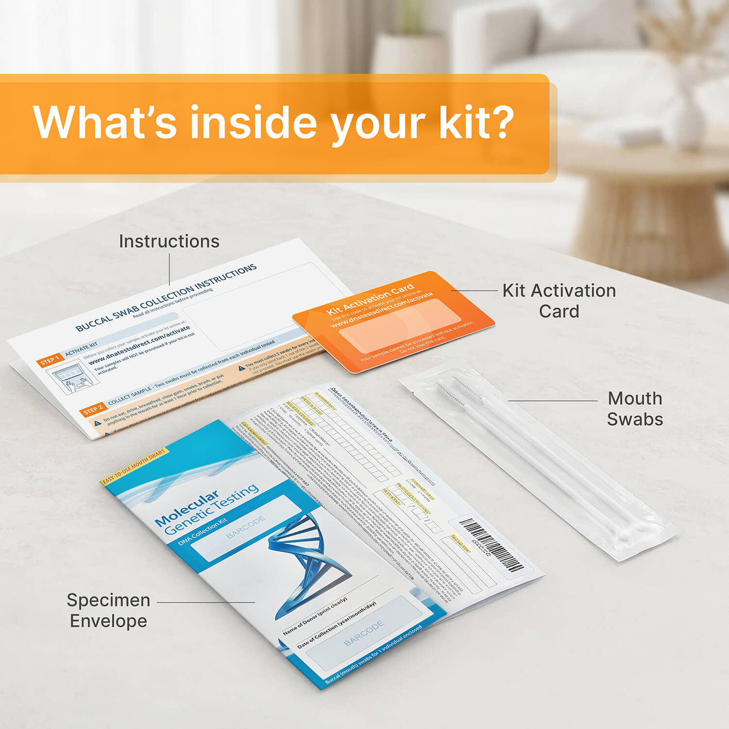 Place your order online, and we’ll send you a DNA test kit with everything you need to collect your samples.